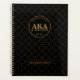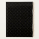 Organize your year in luxurious style with this elegant planner featuring a black background, gold trellis pattern, and dotted medallion monogram.