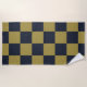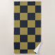 Elegant Gold & Navy Blue Checkered Pattern Beach Towel