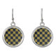 Elegant Gold & Navy Blue Checkered Pattern Earrings