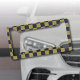 Elegant Gold & Navy Blue Checkered Pattern License Plate Frame