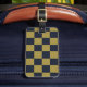 Elegant Gold & Navy Blue Checkered Pattern Luggage Tag