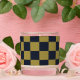 Elegant Gold & Navy Blue Checkered Pattern Scented Candle