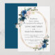 Elegant Gold Navy Blue Pink Flowers Bloom Wedding Invitation