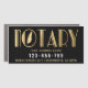 Elegant, trendy business car magnet for notary loan signing agent featuring faux foil gold calligraphy script ''notary'' on a black background. Personalize with your details.