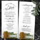 This beautiful wedding program features an elegant design with a single long stemmed gold ochre, goldenrod, or mustard yellow colored rose lying on its side reflecting in water. The titles are written in fancy script calligraphy, and there is space for your ceremony and wedding party details, as well as a short thank you for your guests. Wonderful way to welcome your friends and family to your wedding celebration.