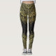Gorgeous circular floral mandala design leggings in luminous gold on soft black background, inspired by mehndi henna body art. Great for yoga class!