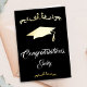 Elegant Gold Ornament Congratulations Graduation Foil Greeting Card. Elegant gold foil ornament and graduation cap on an elegant black background. Personalize with the graduate`s name and add your message inside or erase it. Make a unique personalized gold foil card for a graduate of high school, college or university.