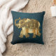 Elegant Gold Paisley Elephant,Green Leather Look Throw Pillow