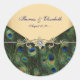 Elegant Gold Peacock Wedding Invitations Classic Round Sticker
