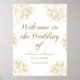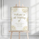 Elegant Gold Peony Line Art Wedding Welcome Poster
