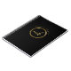 Stylish gold monogram notebook. Design features of modern trendy gold monogram with initials inside and name above it on a deep black background.