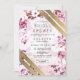Elegant Gold Pink Floral Striped Bridal Shower Invitation
