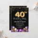 Elegant Gold Purple Balloons 40th Birthday Party Invitation