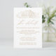 Rustic wedding details card featuring a gold sketched illustration of a barn displayed at the top with a white background. The barn wedding details cards feature elegant gold calligraphy elements throughout the design. Personalize the gold barn details cards with important information such as hotel accommodations, group codes for discounted rates, transportation information, directions, welcome reception information, and your wedding website. Designed to coordinate with our Elegant Rustic Barn wedding collection.