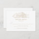 Rustic wedding RSVP cards with a gold sketched illustration of a barn displayed at the top of the design on a white background. Personalize the sketched barn RSVP cards with your desired RSVP date and custom accepts/declines wording.