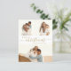 Modern, Minimalist, Elegant „Merry Christmas” Script 3 Photo Collage Christmas Holiday Thin Card in gold white. This festive, clear minimalist, three (3) family photo holiday card features a pretty grid photo collage and saying „Merry Christmas”! The „Christmas” greeting text script is written in a hand lettered swirly swash tail font type. On the back side one photo and your message. Pretty greeting card for your family and friends in Winter Holiday season.