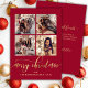 Elegant Gold Script 4 Photo Collage Red Christmas Holiday Card