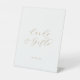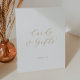 This elegant gold script cards and gifts pedestal sign is perfect for a simple wedding or bridal shower. The minimalist gold and white design features fancy romantic typography with modern glam style. Customizable in any color. Keep the design minimal and classy, as is, or personalize it by adding your own graphics and artwork. The line of text at the bottom of the sign can be personalized with the date, the names of the bride and groom, or a short message like "Thank you". This sign can be used for a wedding or any event or party.