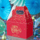 NewParkLane - Elegant and glamorous personalized Holiday Season Favor Box, with a Merry Christmas wish in elegant brush/ script typography in faux gold, with gold confetti, against a deep red background.