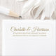 Elegant faux gold and white custom script calligraphy custom names chic wedding return address labels.
