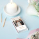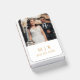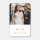 Elegant custom matchbox wedding favors feature a photo of the couple - perfect for an engagement portrait - with with modern and minimal calligraphy script text, heart accents, and custom monogram of the married couple's name and wedding date in simple stylish text that can be personalized. Gold and white colors can be modified to coordinate with your wedding color scheme.