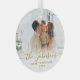 Elegant Gold Hand Lettered "Merry Christmas" Script Family Photo Ornament. Features your favorite family photo, "family name" calligraphy text in handwritten script, with Merry Christmas text and year. Easy to personalize it. Photo tip: crop your photo to square form before upload it.