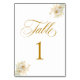 Elegant Gold Script Floral Wedding Table Number 1