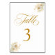 Elegant Gold Script Floral Wedding Table Number 3