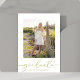 Elegant gold script graduate photo announcement featuring luxurious calligraphy typography and a customizable senior portrait. Perfect for high school or college graduation celebrations, this refined design combines timeless gold accents with modern typographic style. Showcase your graduate’s photo and details in a beautifully crafted keepsake that friends and family will treasure.