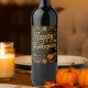 Craft the perfect finishing touch for your Thanksgiving feast with this customizable wine label. It features elegant, flowing script that reads "Happy Thanksgiving," framed by rich, autumnal foliage and two charming pumpkins. The warm gold and amber hues pop against a sophisticated black background, making it an ideal way to personalize bottles for your family gathering or to create a memorable hostess gift. Simply add your family name to the bottom, and you've got a unique keepsake that adds a heartfelt touch to any celebration.