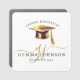 Elegant gold script monogram college graduation car magnet featuring your initials in flowing calligraphy paired with a classic graduation cap illustration and refined typography for your name, university, and class year. Designed for college graduates who want a polished and visible way to celebrate their achievement, this magnet adds a personal statement to your car without permanence. The clean white background highlights the gold details for a timeless, elevated look that stands out while still feeling refined and meaningful.