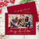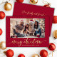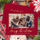Elegant Gold Script One Photo Red Christmas  Holiday Card