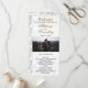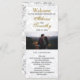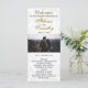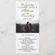 Gold calligraphy wedding program with personal photo of bride and groom to be. Overlaying a faded pattern on the front, and partially faded on reverse, embellishment at the bottom. Placeholder photo is from Pixabay. Part of my elegant Regency Era collection.