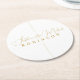 Elegant Gold Script Personalized Monogram Wedding Round Paper Coaster