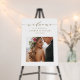 Modern wedding welcome sign with gold elegant calligraphy and a photo. For more advanced customization of this design, please click the Customize Further link to change font, size, and color.