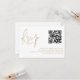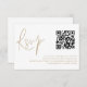 Elegant Gold Script QR Code Wedding RSVP enclosure making it convenient for your guests to reply by scanning your QR code leading to your wedding website. RSVP is in an elegant set handwritten style script and the rest of the text easily personalise to your own in gold on white. Text and background Colors can be changed as required via the edit further button. Add your QR code to your wedding website reply page so your guests can RSVP and see all the details without the need for separate RSVP and details cards. Simply change the sample URL in the template with your own URL of your chosen page of your wedding website and your QR code will be automatically generated to update the sample code in the design,
