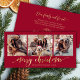 Elegant Gold Script Red 3 Photo Collage Christmas Holiday Card