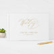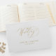 For your wedding reception this elegant wedding guest book features a simple gold modern script typography design that reads "the Wedding of" along with your names and wedding date to personalize on a white background. The spine also has a title for you to customize. Designed by Susan Coffey.
