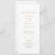 This elegant gold script wedding program is perfect for a simple wedding. The minimalist gold and white design features fancy romantic typography with modern glam style. Customizable in any color. Keep the design minimal and classy, as is, or personalize it by adding your own graphics and artwork. Include the name of the bride and groom, the wedding date and location, thank you message, order of service, bridal party and an optional "in loving memory" memorial.