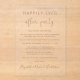 Elegant elopement or small wedding announcement and wedding reception invitation featuring "Happily Ever After Party" in simple gold typography and a chic gold script with swashes, your personalized message and invitation and your names in a signature-like script.