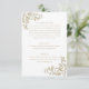 Elegant gold glitter scroll wedding information card. . Personalize with your wedding event details.