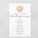 Elegant modern gold seashell theme wedding program with a photo picture of a turquoise blue ocean beach on the back that can be replaced with an upload of your own engagement or beach vacation photo to personalize the fun tropical design. Sophisticated, simple, elegant, and minimalist for a chic coastal wedding at an affordable budget price.