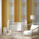 The design features vertical stripes of shades of gold silver and grey colors and golden hearts in a modern, elegant striped pattern.
