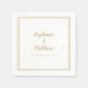 Simple, minimalist and chic Wedding napkin features a modern design with a double framed border in classic yellow gold tone color on a crisp white background. This modern simple design provides timeless, classic sophistication. Personalize names of couple and event date in elegant lettering and script. These are a perfect accompaniment for any wedding party! Be sure to see the collection link on this page to view all of the matching items! Please direct questions or custom requests to invitationsuites@gmail.com.