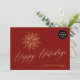 Classy elegant minimal gold snowflake and Happy Holidays script dark red business corporate winter holiday card. Easy to personalize with your company's logo, name, and text on both sides.