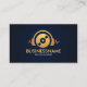 This sophisticated and elegant business card design features a dark navy blue background with a striking gold logo of a record inside headphones. It's perfect for music producers, DJs, recording studios, and other music professionals who want to showcase their professionalism and passion for music.
