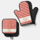 Elegant Gold Square Monogram Red Diamond Pattern Oven Mitt & Pot Holder Set