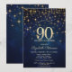Elegant Gold Stars Navy Blue 90th Birthday Party Invitation