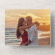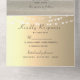 Simple, elegant, modern calligraphy, gold beach wedding invitation with picture, ocean and sand pattern and string lights.