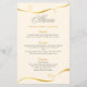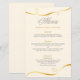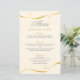 Wedding dinner menu card in gold swirl design pattern.